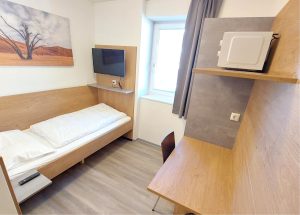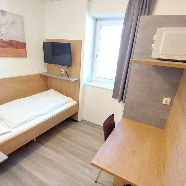 Perchtold Trockenbau durfte bei diesem Bauprojekt den gesamten trockenen Innenausbau übernehmen und schuf damit eine neue Raumstruktur. Im Zuge der Arbeiten wurden umfangreiche Trockenbauwände zur Raumgliederung errichtet. Dabei kamen sowohl Einfachständerwände als auch Doppelständerwände als Wohnungstrennwände zum Einsatz, um eine hohe Schalldämmung zwischen den einzelnen Zimmern zu gewährleisten. Die Zimmer wurden durch Trockenbaukonstruktionen in Nassbereiche und Schlafbereiche unterteilt. Durch den Einbau von Schiebetüren wurde eine funktionale und platzsparende Nutzung der Zimmer ermöglicht. In der Gemeinschaftsküche wurde eine Heradesign Wand- und Deckenverkleidung als akustische Maßnahme eingesetzt. Das Dachgeschoss wurde komplett ausgebaut, inklusive einer Blower-Door-Messung für eine luftdichte Gebäudehülle.