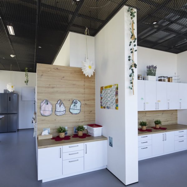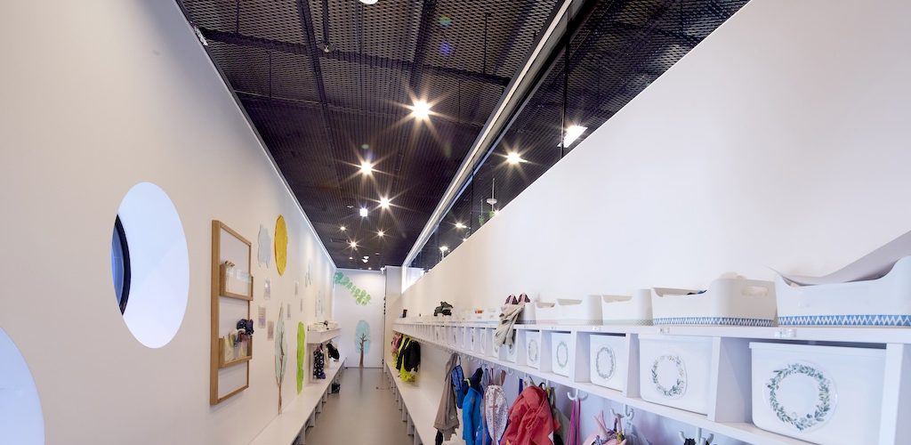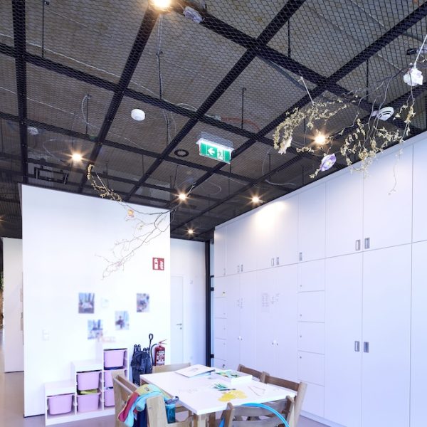 Perchtold Trockenbau durfte in den Gängen und Waschräumen des Kindergartens, im Bereich der Raiffeisen Regionalbank Schwaz-Wattens und der Prose GmbH Streckmetalldecken montieren. Auflagen für Akustikdämmung wurden auf der Streckmetalldecke im Bereich der Bank verteilt und bieten zusätzlichen Durchblickschutz zur Rohdecke.